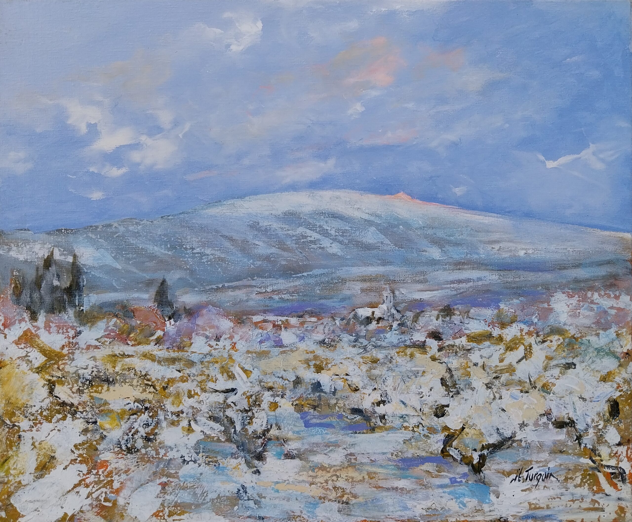 (Français) MONT VENTOUX ,hiver sous la neige devant MAZAN